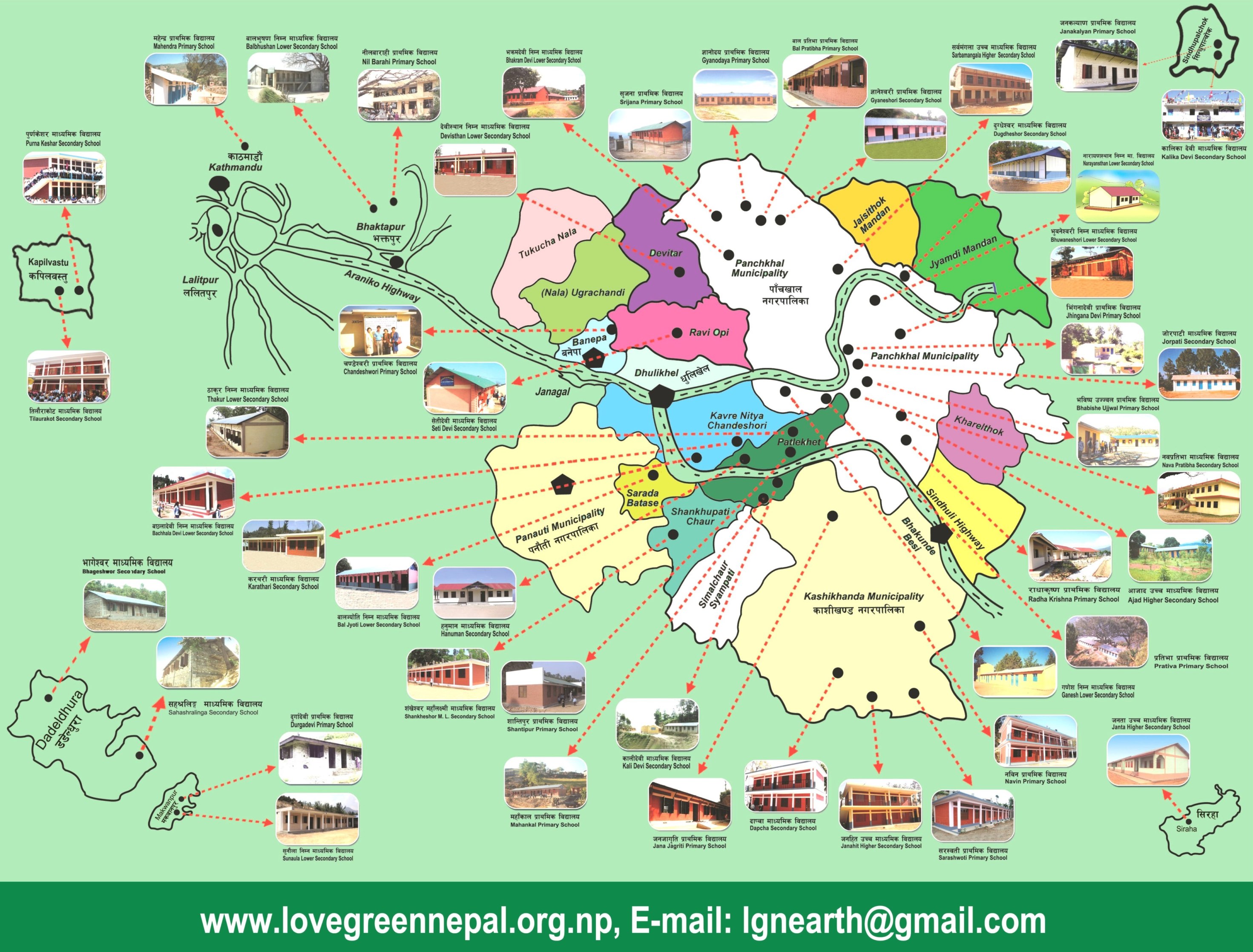 Map Showing Public School Buildings That LGN Constructed/ Reconstructed With Funding from AWCEF Japan, Chautary Japan, LGJ and different Japanese donor agencies, groups and individuals.